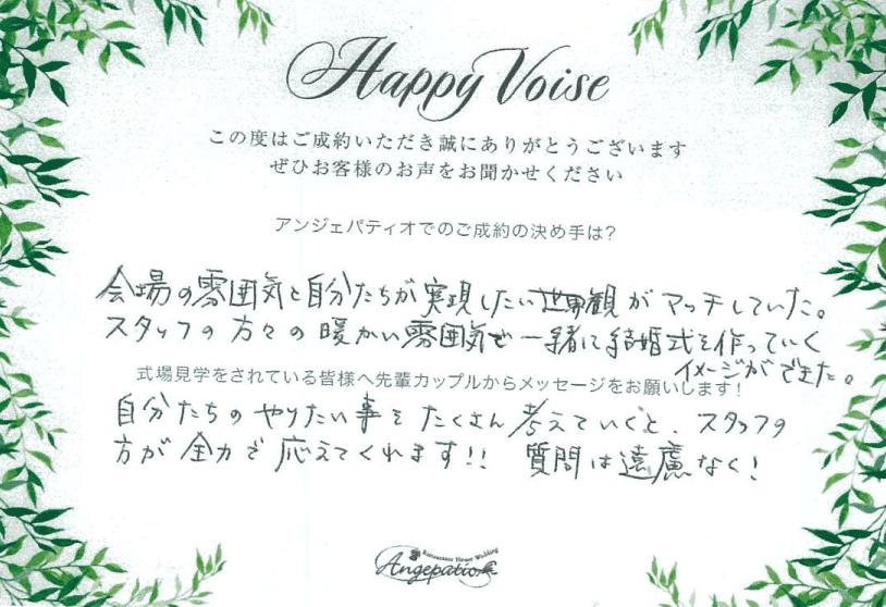 アンジェパティオの結婚式に、決まった正解はありません。 進行・演出・過ごし方まで、すべてはおふたり次第。