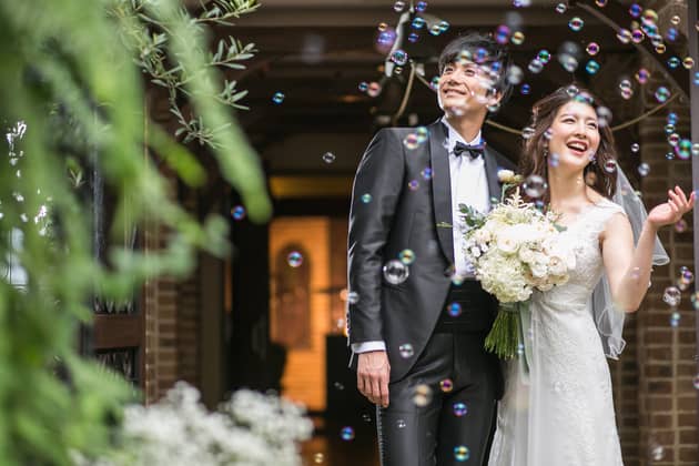 隣接するプライベートガーデンでは、フラワーシャワーやウェルカムパーティー等、笑顔溢れる1日が叶う。